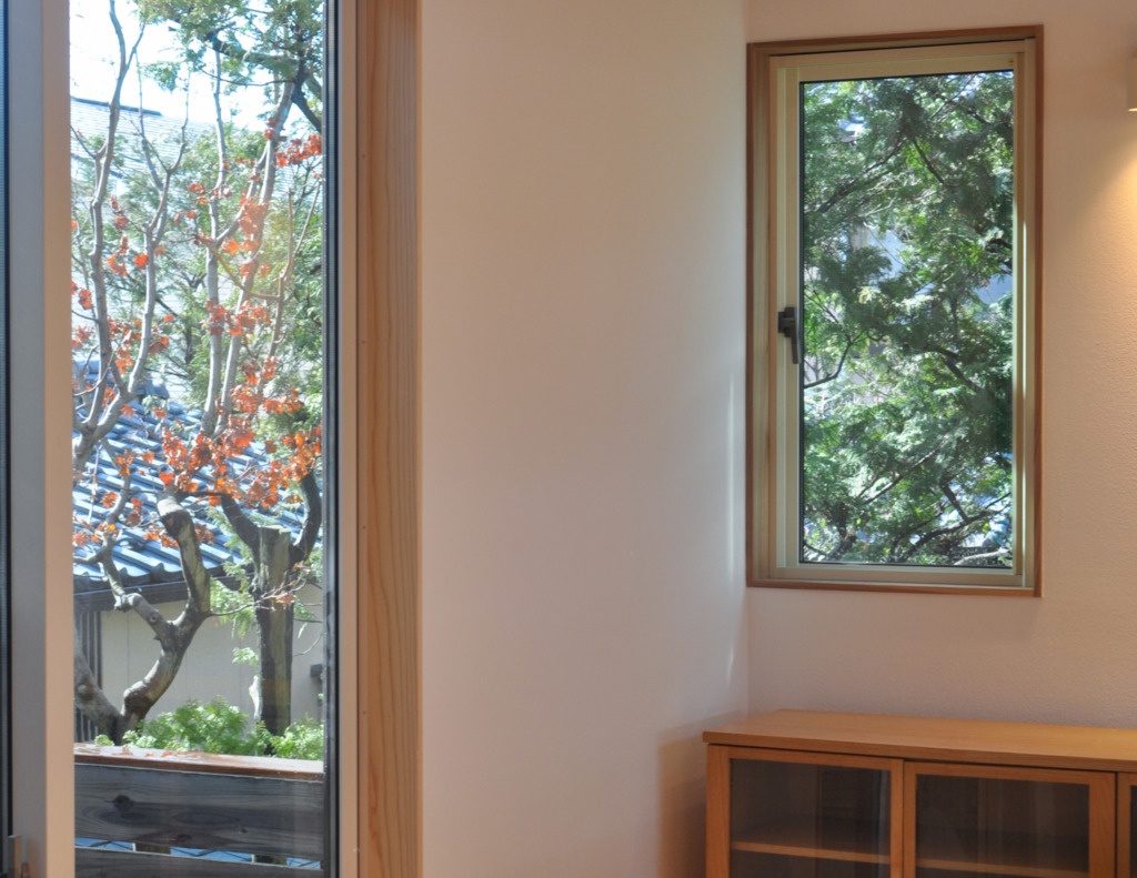 北側の窓は暗いと思われがちですが、実は一日を通して最も安定した光を届けてくれるのが北窓です。建物の外部に緑の木々があれば、その緑がかった光を室内へと導いてくれます。